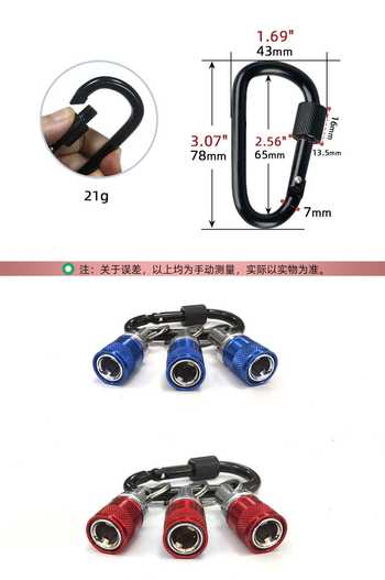 / 芸贝批头钥匙扣1/4六角柄批头套筒彩色登山扣套筒接杆套装