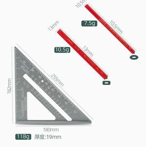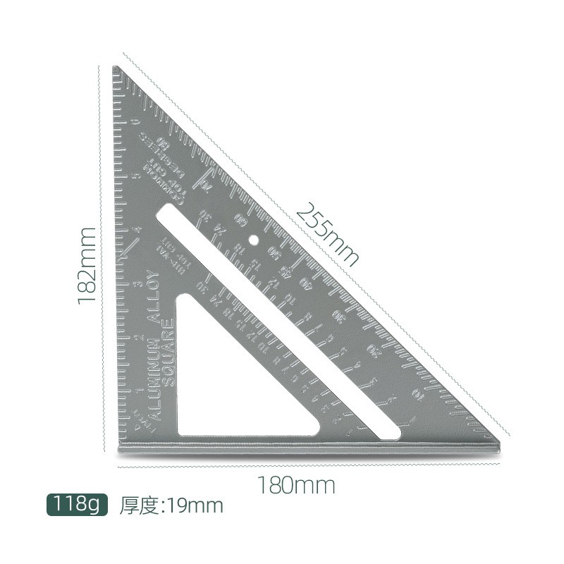 芸贝银色7英寸英制三角尺90度加厚角尺铝合金木工测量直角尺子